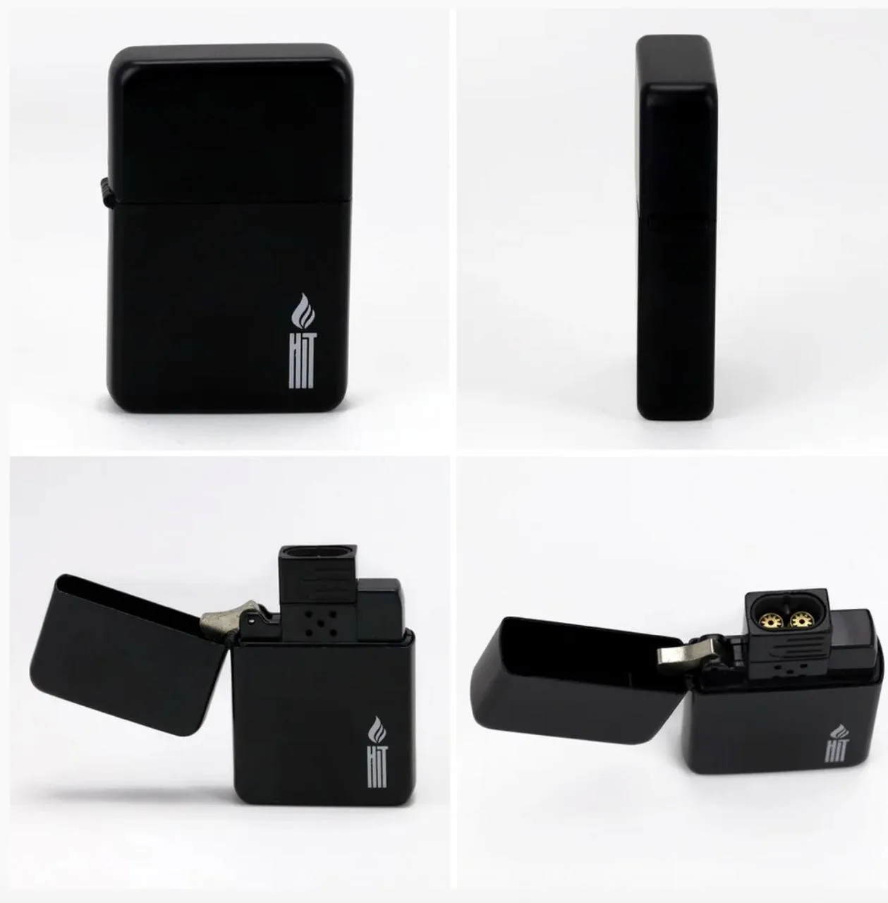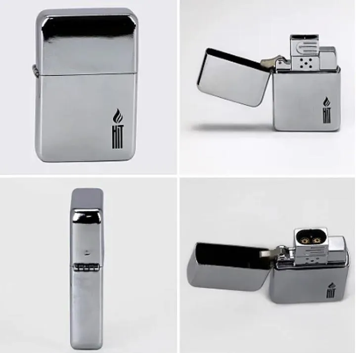 Isqueiro Maçarico Hit Tipo Zippo 2 chamas HIT-AC-025(Cromado/Preto) – Unidade