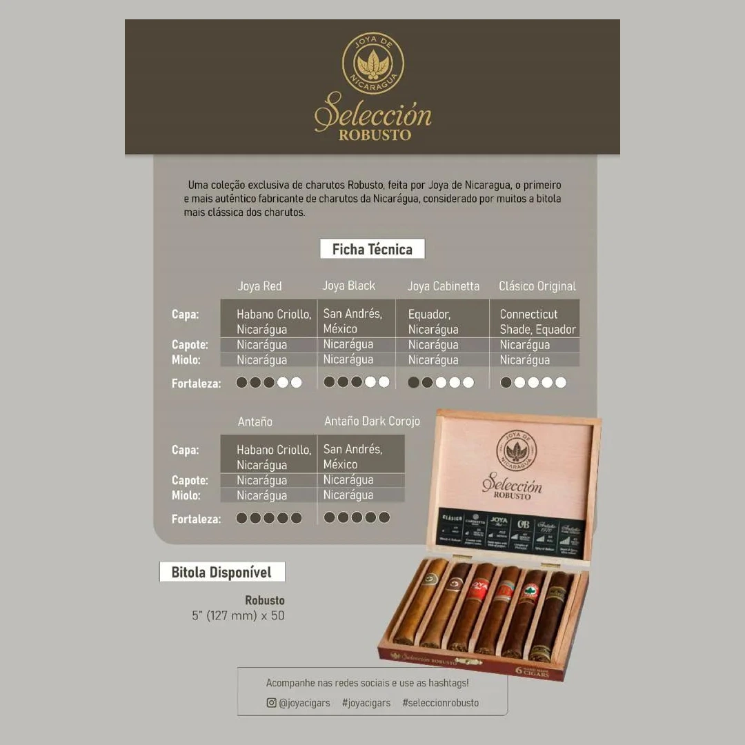 Kit 6 Charutos Joya de Nicaragua Seleccion Robustos