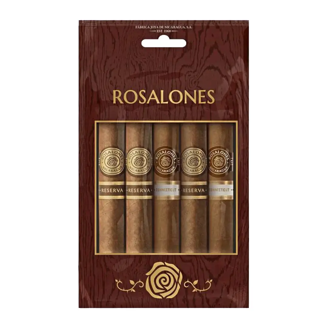 Esta seleção reúne charutos long-filler feitos à mão, trazendo a autenticidade e riqueza do Rosalones Reserva e a cremosidade suave do Rosalones CT. São blends diretos, confiáveis e versáteis, ideais tanto para o consumo cotidiano quanto para quem deseja conhecer a linha Rosalones com praticidade e segurança.